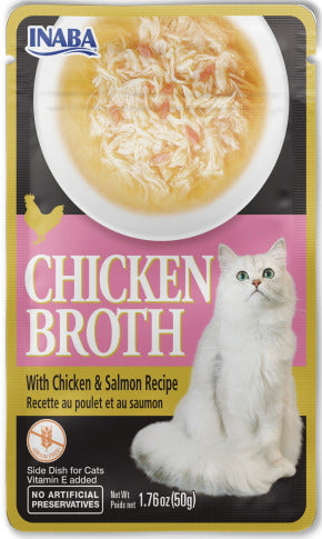 - Inaba Chicken Broth pouches are a great side dish to your cat's main diet and can also be used as a food topper or as a part of a rotational diet.