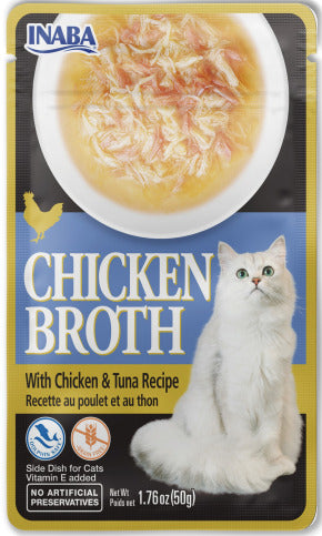 - Inaba Chicken Broth pouches are a great side dish to your cat's main diet and can also be used as a food topper or as a part of a rotational diet.