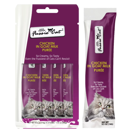 - Our signature Chicken in Goat Milk Purée is a celebration of pure poultry-loving goodness, enhanced by the gentle nourishment of goat milk. Puréed to palatable perfection, this treat is a classic favorite reimagined, promising a wholesome and hearty meal that’s perfect for even the fussiest of felines. Each serving is crafted to provide essential nutrients and promote overall health, with goat milk offering added benefits such as improved digestion, hydration, and inflammation relief. This purée is designed to satisfy your cat’s cravings while supporting their well-being, making it an ideal choice for treat time or as a meal topper. Ready to delight your feline friend with a luxurious and nutritious treat?