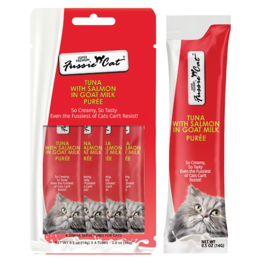 Fussie Cat Tuna with Salmon in Goat Milk Purées