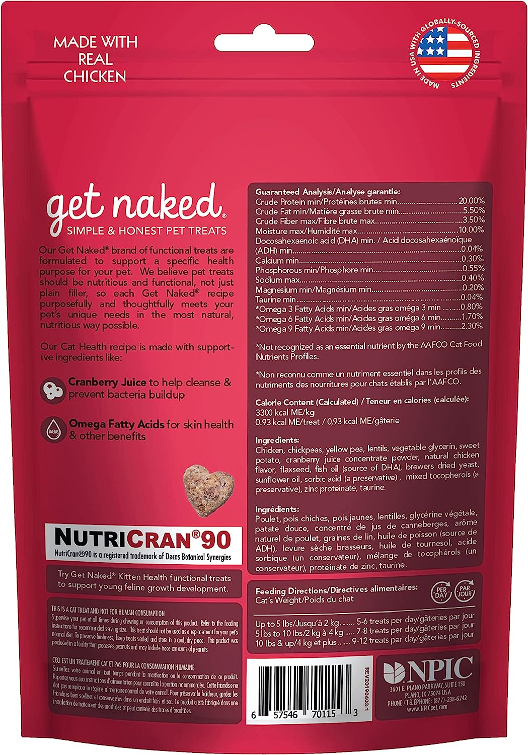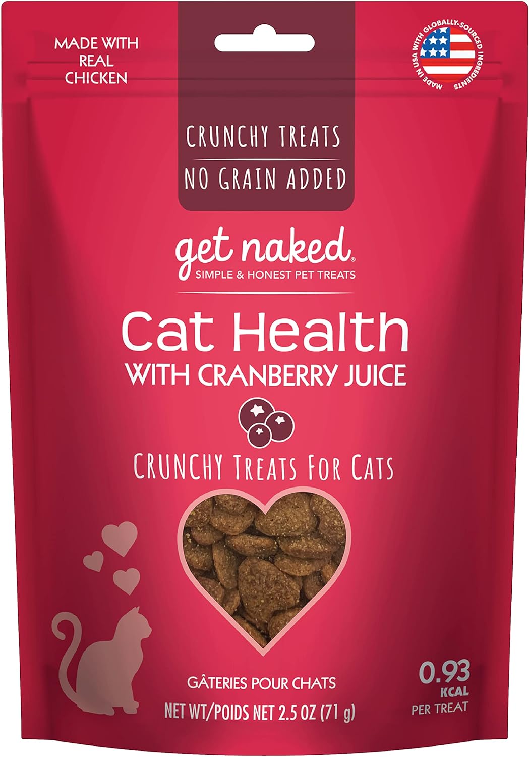 Get Naked® Cat Health with Cranberry Juice are grain-free treats specially formulated with cranberries, a natural antioxidant, to promote a healthy urinary tract.