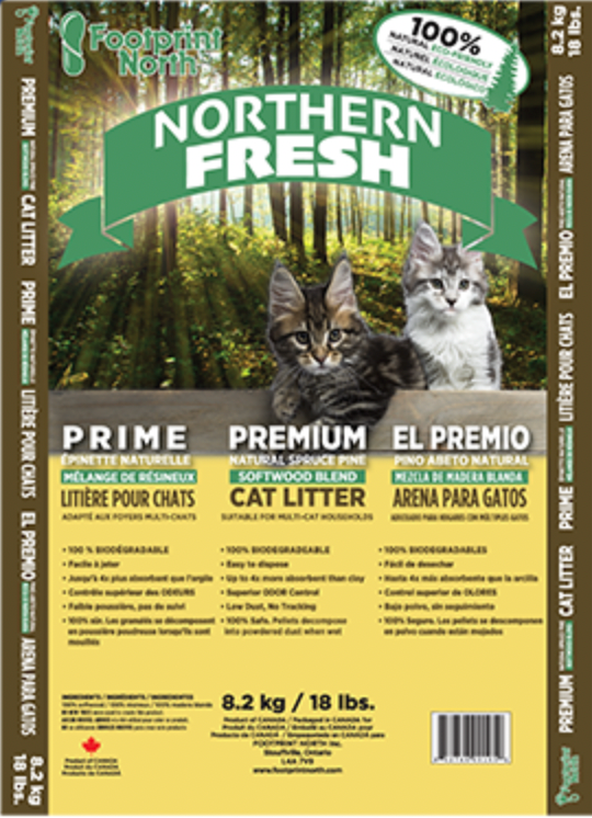 NORTHERN FRESH Spruce Pine Wood Pellet Cat Litter is made from 100% Natural Wood Pellets. As a non-clumping litter it is up to 4 times more absorbent than clay, low dust and provides a natural Spruce scent. Keeping your home naturally fresh and clean.