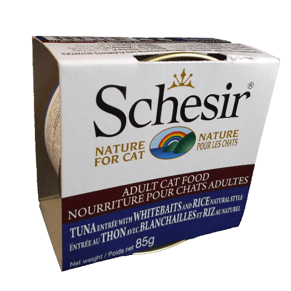 Schesir Tuna Entrée with Whitebaits and Rice is a recipe is based on real fillets of delicious tuna, paired with a delicious whitebaits topping, for a mouthwatering meeting of flavours. The ingredients are prepared in their broth, for cats who love a more natural taste and texture.