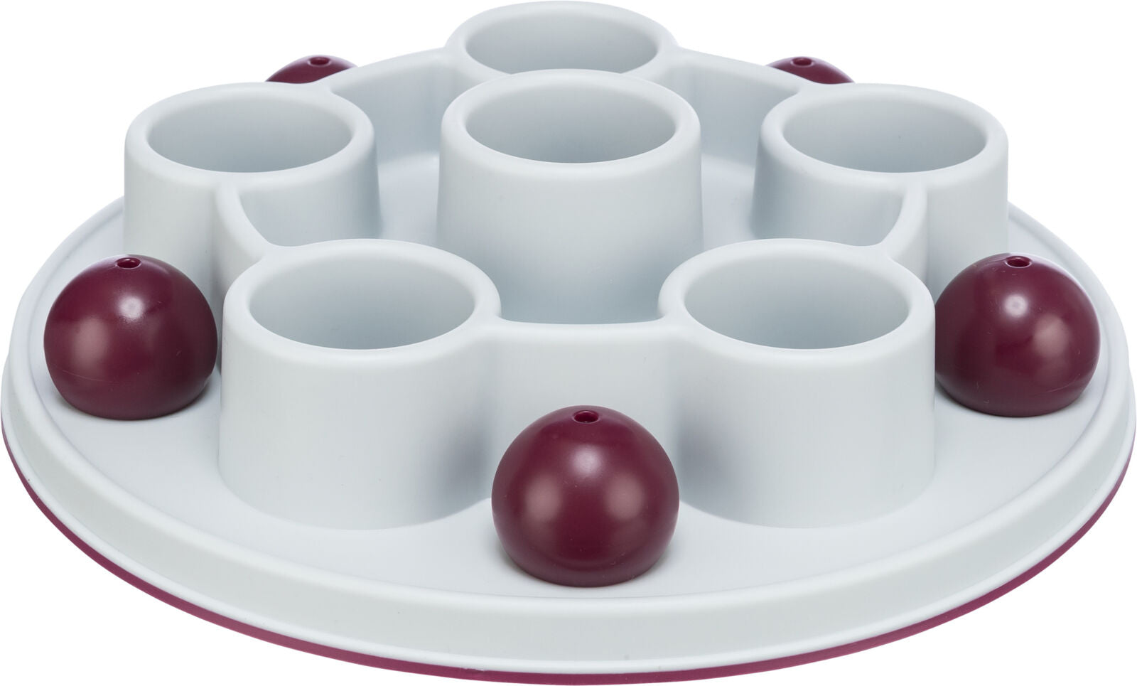 - cat earns rewards by removing the ball-shaped covers to reveal the treat