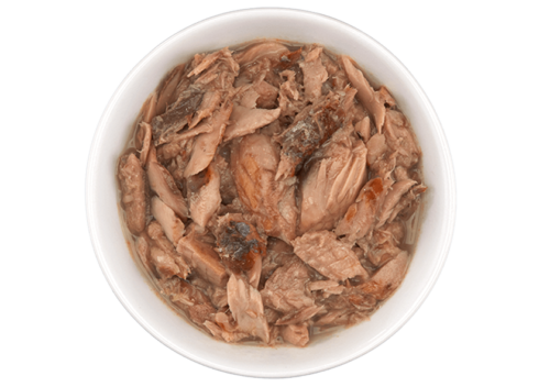 - Tender chunks of flaked ahi tuna and mackerel in a purr-worthy tuna consommé