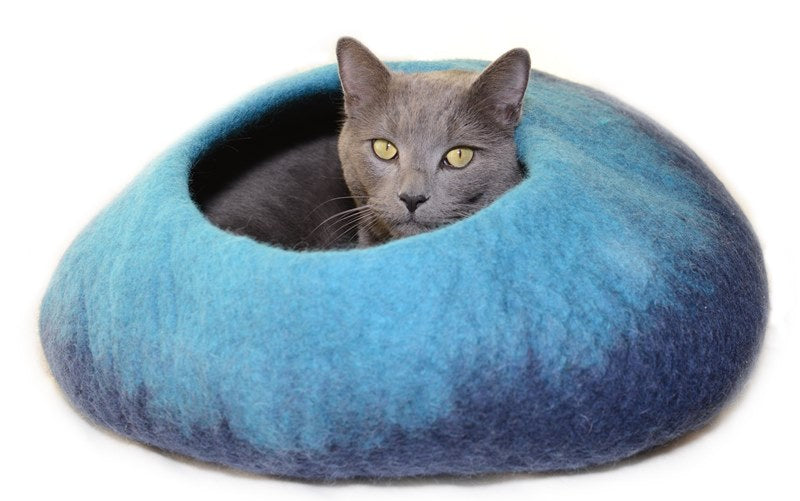 Wool Felt Ombre Cave Bed - Navy & Turquoise